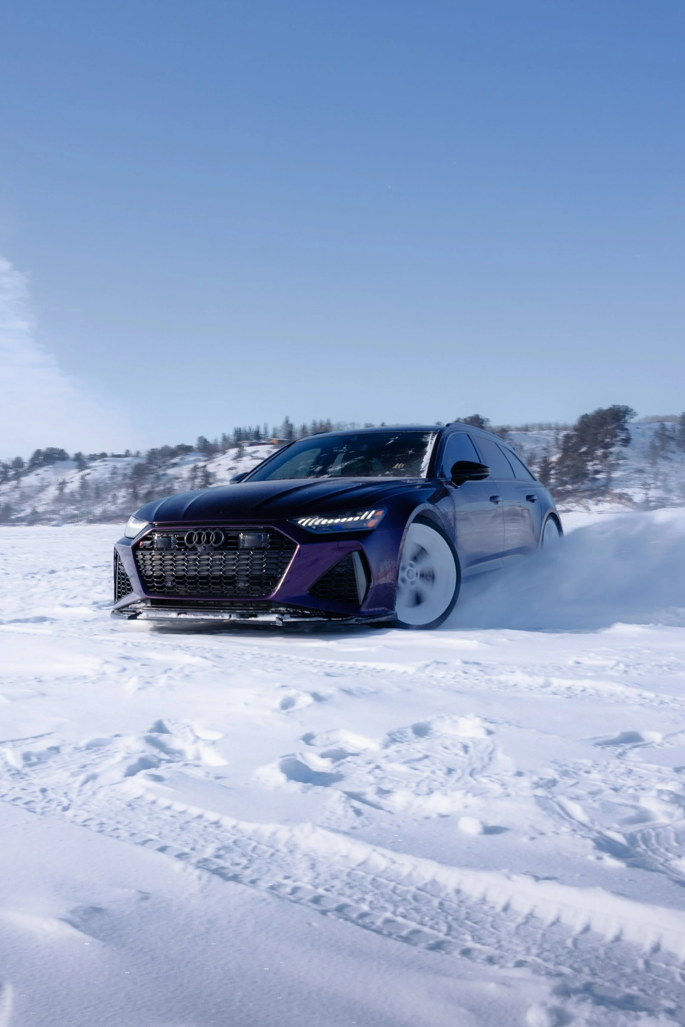 The frozen lake provided a quiet yet dramatic setting for the RS6. The soft, diffused winter light enhanced the car’s deep hues, making the purples and pinks stand out against the icy backdrop. The contrast between the RS6’s sharp design and the smooth, frozen surface created a visually striking effect. With minimal distractions, the focus remained entirely on the car, highlighting its presence and performance. The conditions allowed for both detailed still shots and dynamic action shots that captured the RS6 in motion.