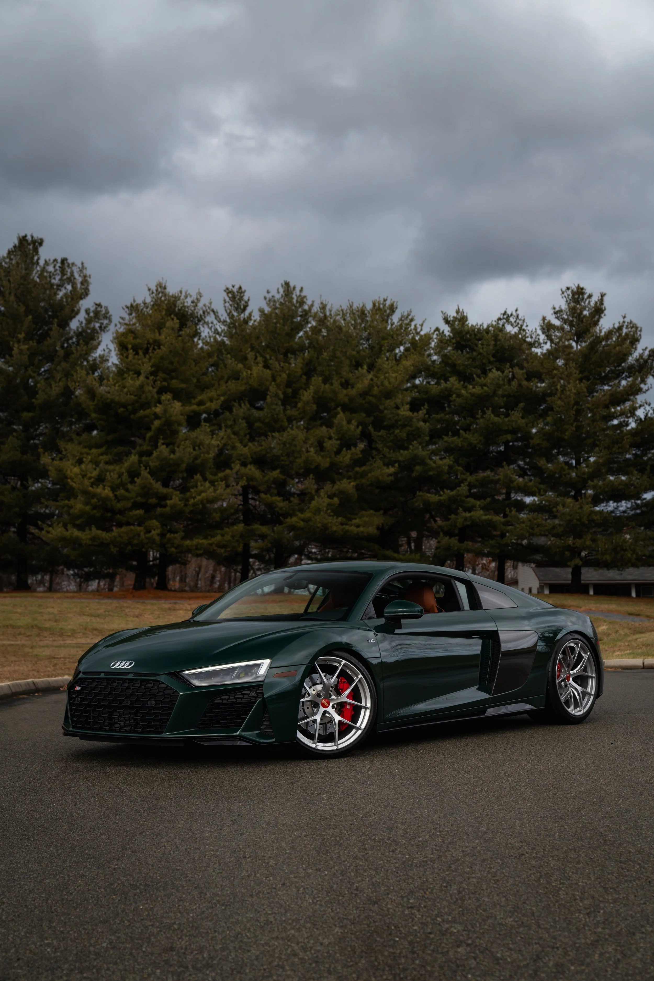 A quiet stretch of road in Pennsylvania set the stage for this refined yet aggressive Audi R8. The overcast sky and damp pavement provided a moody atmosphere that complemented the deep Goodwood Green paint. Positioned against a backdrop of towering trees and scattered autumn leaves, the car's polished lines stood out even in the subdued lighting. The shoot focused on highlighting the balance between luxury and performance, capturing the R8's striking presence in a natural setting.