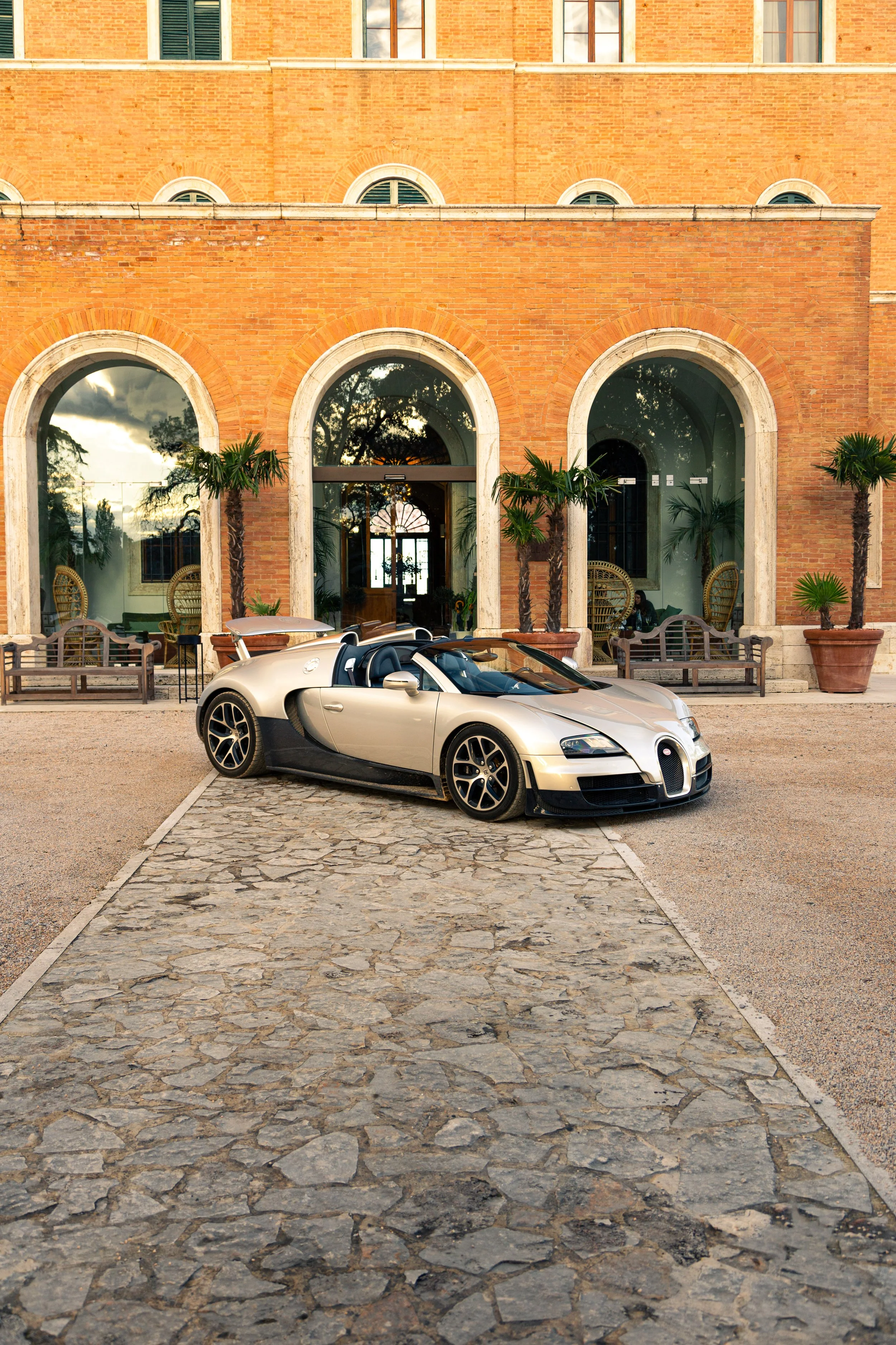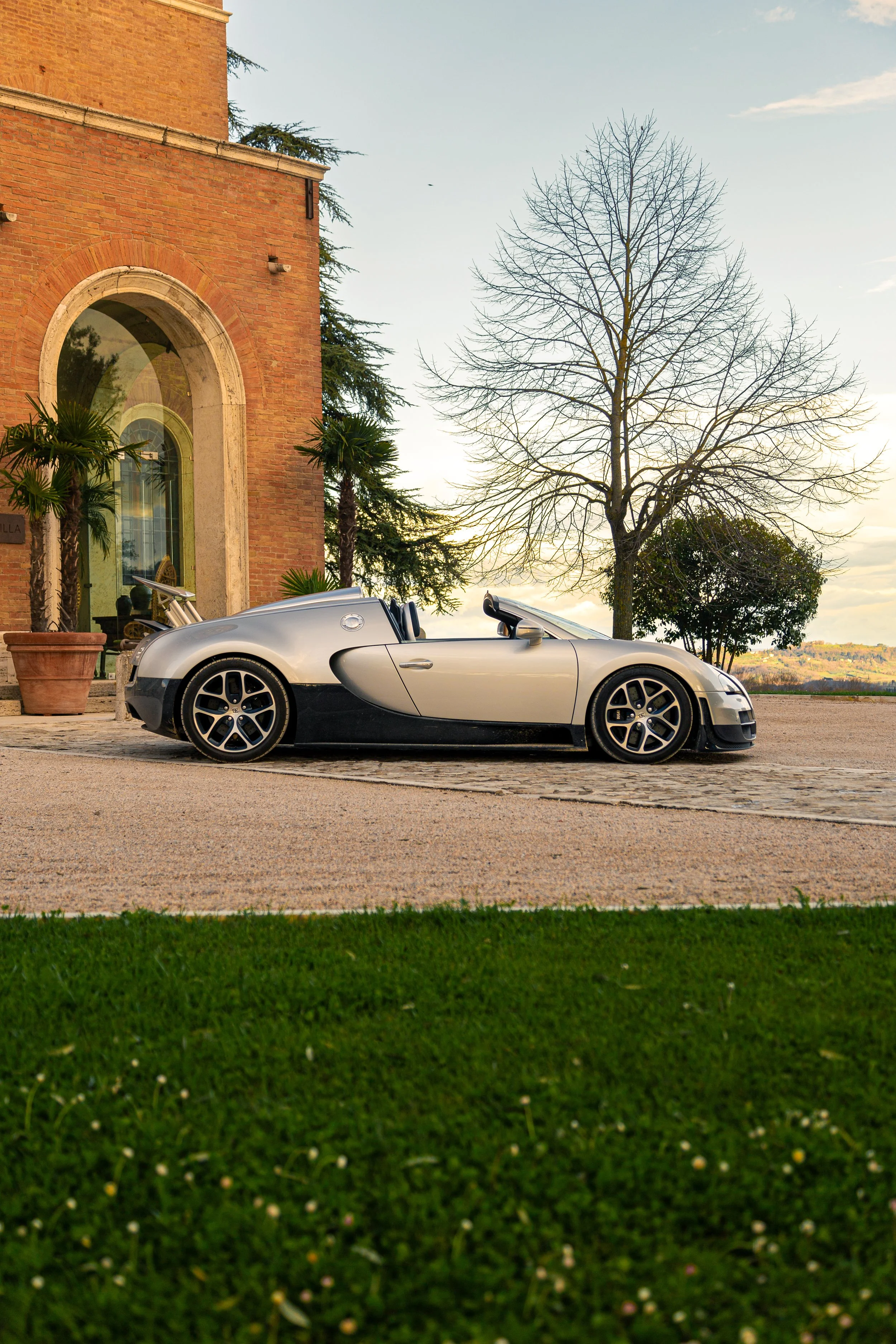 The setting for this session was a refined slice of Tuscany, with timeless architecture and peaceful landscaping playing host. Everything about the environment matched the tone of the car. Quiet. Confident. Intentional. The luxury of the estate created a natural harmony with the Veyron’s silhouette.
