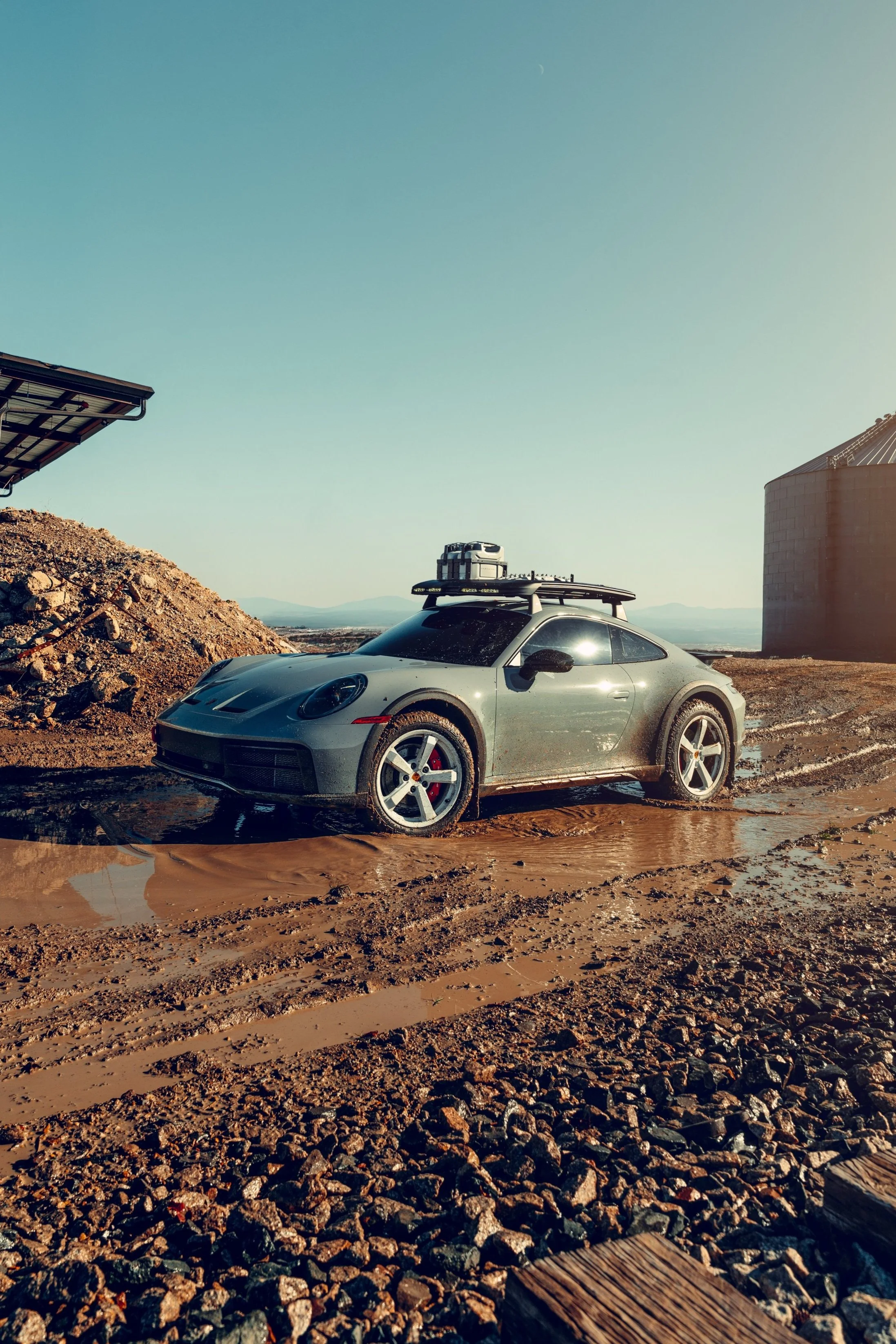 The rugged terrain set the tone for this shoot, with the Porsche 911 Dakar proving its capability in the mud and dirt. Every shot captured a balance of performance and adventure, showcasing the Dakar as a machine built for more than just pavement.